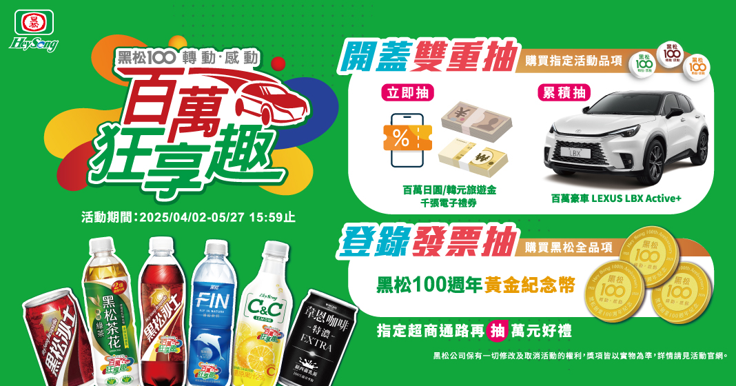 黑松春日遊 滿99元登錄發票抽「1977黑松經銷運輸車」